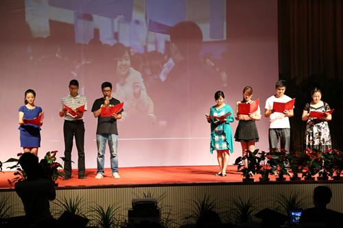 原创诗朗诵《那一年,我们一起上大学》把毕业生带回到了四年里经历的点点滴滴。批改试卷一遍一遍直到把得分点寻找的罗正军老师,陪伴学生四年亦师亦友的辅导员时云老师,记得学生住哪一个房间、睡哪一张床的34栋宿管罗阿姨,还有见证校园爱情美好的一对新人李骏、项薇,斩获挑战杯银奖的蔡静雯同学,保送湖南大学深造的李招来同学的深情演绎表达了毕业生与学院之间恋恋不舍之情,引起了在场毕业生的强烈共鸣,赢得了经久不息的掌声和感动的泪水。