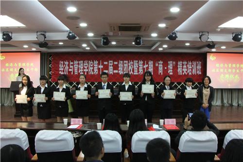 除了集中授课培训,经管学院还通过二十几场学生干部部门培训,学生干部实践课程锻炼来全面提升学生干部工作水平及综合素养,并在此基础上制定了具体的学生干部目标考核标准。此次的二级团校课程结束分别以闭卷和微创意作品设计进行了结业考试,结业考试合格者由院团委统一颁发结业证书,结业考试不合格或分数较低者撤换学生干部岗位,切实做到有培训、有考核、有奖惩。