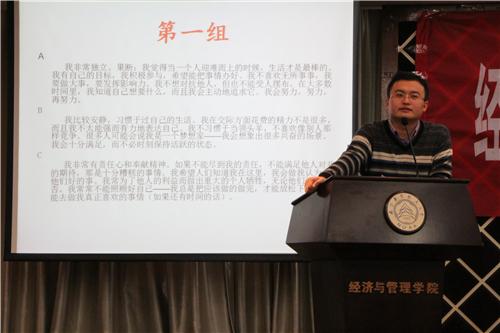 授课中,丁荣茂老师深入浅出的跟学员讲述了中国梦的内涵,南航几代人为实现高水平研究型大学梦想所作的奋斗,激励经管学子“仰望星空,脚踏实地”;裴宇晶老师激情慷慨的给学员们分析人的九种性格,教会学员明白自己个性、接纳自己的短处、活出自己的长处,懂得如何与不同的人交往沟通及融洽相处,与别人建立更和谐的关系;徐川老师则向学员介绍了从古至今的中国传统文化,幽默风趣的语言一次次赢得学员们的掌声;学校八大学生组织主席们则从团干实务的角度向学员传经送宝,分享自己奋斗历程与心路;经管学院优秀研究生代表李佳兴和刘晓倜与大家分享了她们在援藏支教活动中的感受与体验,无论是西藏的教学教务工作,还是“三下乡”社会福利义工活动,她们的无私和热情让学员们在体悟温暖真情的同时更加深刻理解学生干部的责任与义务。