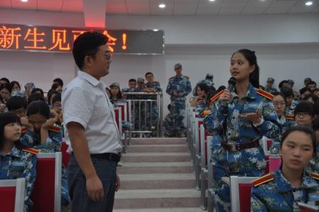 院长致辞中,周德群教授首先向分别本科生、研究生提出“为什么要上大学”、“如果重新上大学,你会怎样做”两个问题,并当场采访了部分新生,引发了新生们的热烈讨论。周院长在总结学生发言后,详细阐述了当代大学生所应担当的“责任”内涵,并建议新生们“认清自己的角色,勇于担当责任”。最后,周院长还以“当你赖床的时候他在锻炼,所以他健康活力;当你打游戏的时候他在自习,所以他知识丰富……”为格言送给新生,鼓励大家勤勉学习,追求卓越。周院长的发言加深了新生们对大学学习和生活的认识,增强了爱院荣院的责任感和顺势成才的使命感,对于尽快适应大学学习和生活奠定了良好的基础。