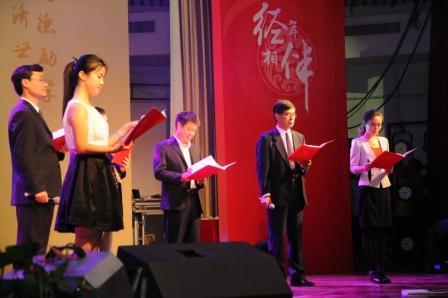 第二篇章砥砺传承,以“传承”为主线,讲述了学院专业、学术、科研发展过程中的大事,这一篇章通过舞台剧、快板、歌舞以及毕业院友的视频感言和祝福,体现学院学科发展的传承与经管人敢为人先的创新。