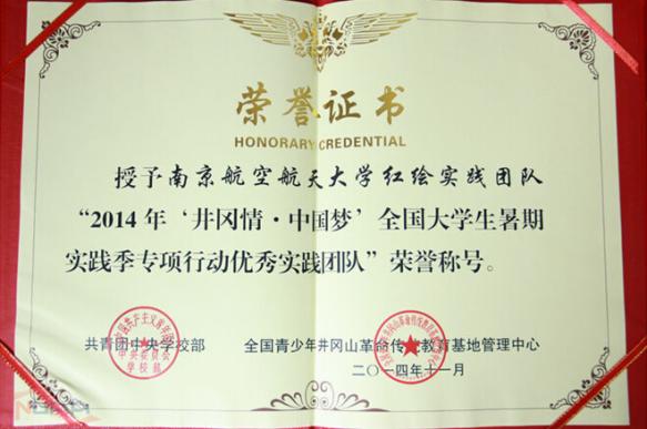 11月6日,2014年“井冈情·中国梦”全国大学生暑期实践季专项行动总结暨成果展示活动在全国青少年井冈山革命传统传统教育基地举行,团中央书记处书记傅振邦出席并讲话。我校必赢3003no1线路检测中心“红绘”实践团队表现出色,获得“优秀实践团队”荣誉称号。