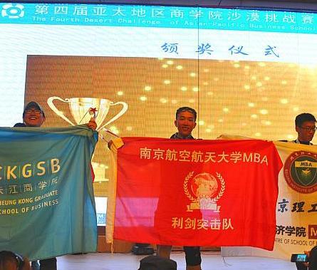 4月30日—5月3日,第四届“亚太地区商学院沙漠挑战赛”(简称亚沙赛)在内蒙古阿拉善左旗附近的腾格里沙漠举行。清华、北大、人大、复旦、新加坡国立大学、曼彻斯特商学院、台湾政治大学等49所亚太地区顶尖商学院的MBA精英组成参赛队伍,参加负重徒步穿越60余公里沙漠的竞技比赛。南航MBA“利剑突击队”斩获赛事最高奖项——“沙鸥奖”。