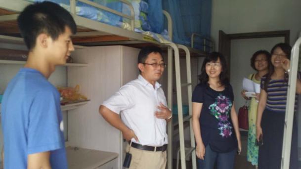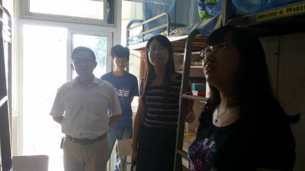 9月2日下午,必赢3003no1线路检测中心院长周德群、党委书记焦宏图、党委副书记许静在学院辅导员袁颖、田苑娜的陪同下,一同走访了学院本科生及研究生的新生宿舍。