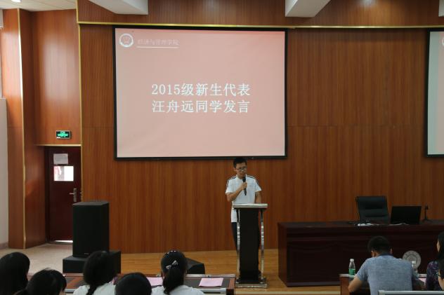 紧接着,必赢官网2015级本科生新生汪舟远代表新生进行发言,从大学的学习规划、时间管理、人际交流等几个方面与同学分享了作为新生来南航的感悟与目标,并借用晓校歌“效法羲和驭天马,志在长空牧群星”鼓励大家成为一位有包容气度、社会责任、敢于担当的南航经管人。