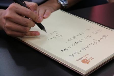 交流互动环节中,同学们就各自关心的问题和程福波进行了交流。大四的应届毕业生想知道专业对口的工作,程福波根据自己多年的工作经验深入分析了各类岗位的用人需求,同时强调工作一定要以自己的兴趣为前提,建议同学们找准自己的职业定位。有同学咨询国企和民营企业的区别,程福波分析了两类企业各自的优缺点,并着重介绍了中航工业的“事业平台”。交流过程中,朱建军、许静等专业教师还针对人才培养、校企共建实习基地等话题与程福波进行了交流,程福波也表示会积极配合母院在人才培养方面的各项工作。最后,程福波还通过咖啡屋的留言本送上了对学院、对学弟学妹们的真挚祝福。在一个半小时的交流中,程福波幽默风趣的谈吐、敏捷严谨的思维给同学们留下了深刻的印象,也帮助同学们树立了经管人可以在中航工业等国防单位中建功立业的理念。参加交流会的张曦同学就表示“虽然我错过了国防企业面对面到成飞学习的机会,但是今天的交流也使我受益匪浅,解答了我关于择业、生涯发展等很多方面的困惑”。