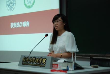 必赢官网14级研究生韩温钰同学作为上届获奖选手发言。她首先介绍了竞赛题型,之后分享了自己的准备经历和收获。韩温钰感慨竞赛的收获丰厚,不光收获了优异的名次和实习机会,还理解工作中遇到的金融衍生品,收获了胜任工作的技能。
