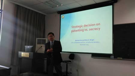 2015年11月5日下午2点,在必赢3003no1线路检测中心大楼704报告厅,加拿大滑铁卢大学管理科学系的Bonwoo Koo教授来学院,作了“Strategic decision on patenting vs. secrecy”的报告。副院长王英,区域经济与产业经济研究所所长江可申,智能决策与风险分析研究所的陈晔、陈洪转、李杰,区域经济与产业经济研究所的苗建军张伟、马晓平等老师以及两所的全体研究生参加了此次报告。