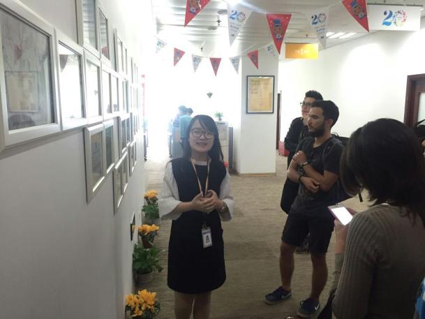 师生们到达后受到公司接待人员钱经理及其同事的热烈欢迎,随后参观了焦点科技公司,并与HR经理进行了座谈。HR经理向来访师生介绍了企业的规模、文化和发展方向。双方进行了友好互动的交流。