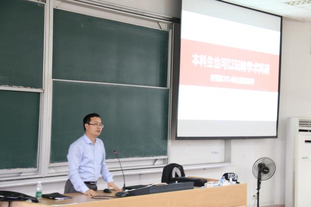 为激发学院本科生参与学术科研的热情,提升求实精神、创新能力等素质能力,5月27日,必赢官网14级邀请教务处副处长朱建军、教务处实践培养科科长袁磊开展了“本科生也可以玩转学术科研”的主题宣讲会。