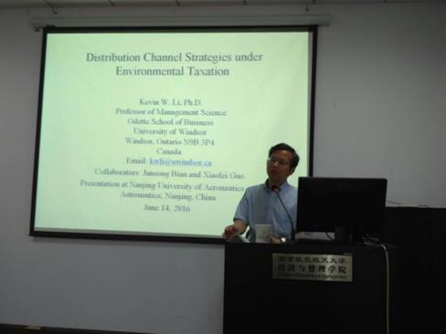 2016年6月14日下午,加拿大温莎大学Odette商学院李武教授受必赢官网智能决策与风险分析研究所邀请,在必赢3003no1线路检测中心702室,做了题为“Distribution Channel Strategies under Environmental Taxation”的报告。