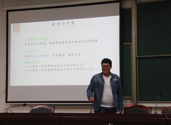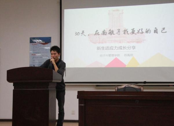 10月20日晚,经管学院在将军路校区D1213教室召开了新生适应力成长悦享会暨群星计划导航课,2016级辅导员朱一豪、刘旭为学院全体新生授课。本次导航课以“大学和梦想”为主题,旨在让同学们进一步明确自己的目标,把握大学时光,为完成梦想而努力。