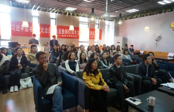 同学们的思考得到了老师们的认可,几位老师也对长征精神讲述了自己的看法。缪国龙说:“广义地理解,中国共产党发展的历史也是一次长征,党的总目标也是一次长征的过程。而对每个人来说,其人生阶段都是一次长征,有理想信念非常重要。习总书记对长征精神的解读可谓高屋建瓴,我们应当结合实际,将其应用于学习工作生活之中。”