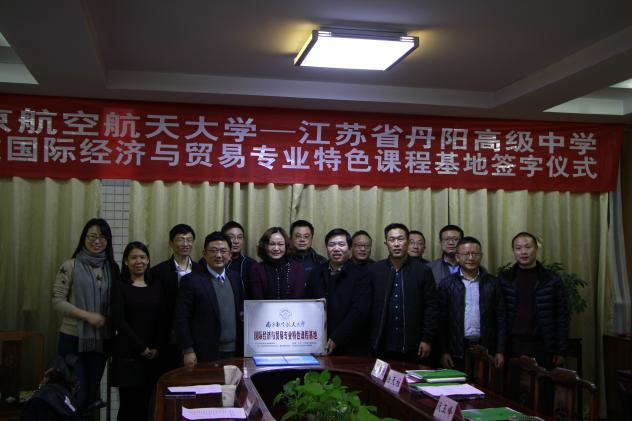 2016年12月20日下午,“必赢3003no1线路检测中心和江苏省丹阳高级中学共建国际经济与贸易专业特色课程基地签约仪式”在江苏省丹阳高级中学举行。出席签约仪式的有南航学生处处长王晖、副处长张鹏、南航校机关党委副书记朱飞、必赢3003no1线路检测中心院长周德群、副院长王英、学院党委副书记许静、院长助理邓晶,江苏省丹阳高级中学校长朱禾勤、副校长李建平以及各年级部、综合教育处、学生工作处主任等。