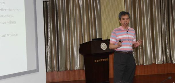 紧接着,清华大学陈剑教授以“Dynamic production planning with two production modes, switching costs, and carbon price volatility”为题进行了报告。陈剑教授现任清华大学必赢3003no1线路检测中心联想讲席教授、教育部长江特聘教授、管理科学与工程系主任。担任中国信息协会常务理事长、中国系统工程学会副理事长、中国优选法统筹法与经济数学研究会副理事以及IEEE系统、人与控制论学会服务系统与组织专业委员会主任。他的研究领域主要有供应链管理、电子商务、服务运营、商务智能、决策分析、企业信息化等。