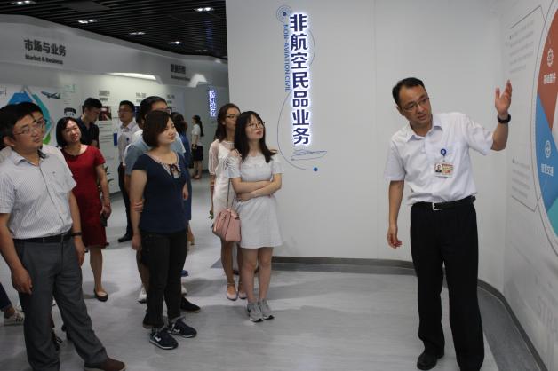 7月12日下午,气温已经上升到了摄氏39度,炎炎的烈日让调研团一行内心更加火热与期待,大家来到了中国航空无线电电子研究所(615所)。师生一行人在615所党委书记王志松,党务副书记火国锋,人力资源部部长丁晗,以及8位部门部长及南航校友的带领下,先后参观了企业形象展区、多媒体影厅等企业品牌展区,空管实验室,无人机通用地面站总装大厅和民机航电综合试验室,王志松书记用了将近一个小时的时间,向南航师生细致全面的进行了全程讲解。我们了解到,技术能力是上电所的“立所之本”,所里已经建成20个国际先进的水平的专业实验室,形成了产品核心技术研究环境、产品全寿命周期开发环境和产品测试与验证环境,615所秉持“科技创业,人才兴所”的发展战略,“国内领先,国际一流”的行业定位,致力于让飞行智能、简单、可靠,让天空智慧、安全、高效。