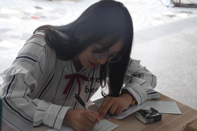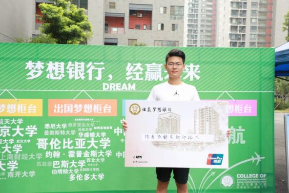 学院为报到的新生开设了“梦想银行”,新生可以在此领取“经营梦想银行卡”,写下自己对未来的期许,将它们存放在“银行保险柜”。梦想银行将会伴随2017级新生大学四年,四年后,学生凭借自己的梦想“银行卡”来查看自己的梦想是否实现。希望用梦想银行卡不断激励学生们不要忘记自己最初的梦想,努力向着梦想前进。”