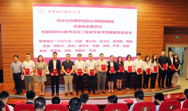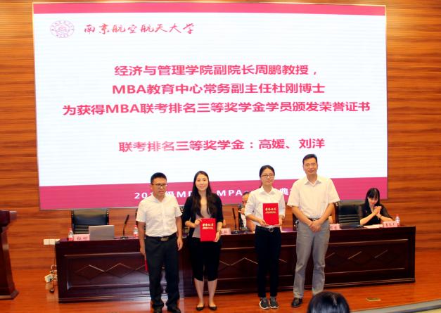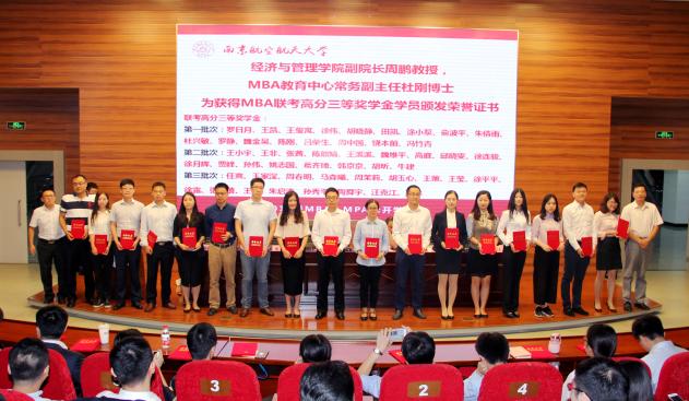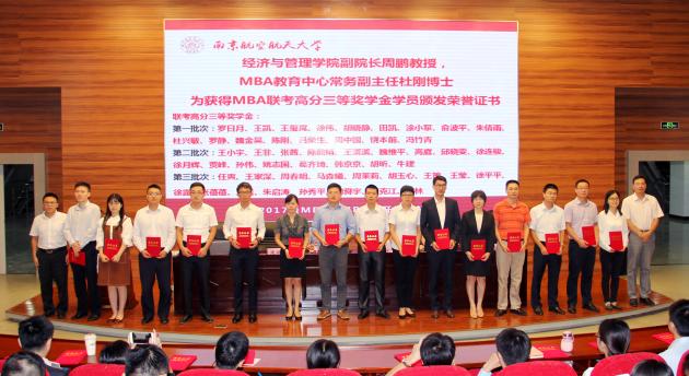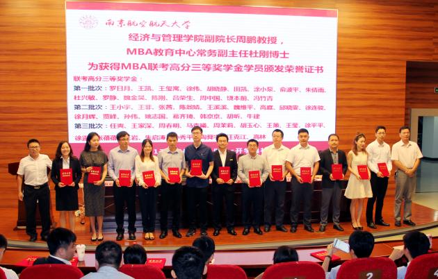 随后,必赢3003no1线路检测中心党委焦宏图书记宣读获得2017年MBA奖学金名单,本次奖学金项目分为名次奖学金和高分奖学金。研究生院常务副院长江驹教授、必赢3003no1线路检测中心院长周德群教授、必赢3003no1线路检测中心党委焦宏图书记、必赢3003no1线路检测中心副院长周鹏教授、必赢3003no1线路检测中心教育培训中心(MBA、MPAcc教育中心)执行主任杜刚博士分别为获得奖学金的学生颁发证书并合影留念。