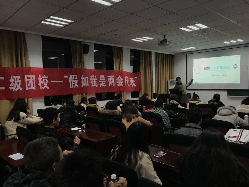 2018全国两会正在举行,教育、养老、医疗、环保……两会代表们的提案总能引发社会热议,为了提升经管学子关注时事热点的意识和发现问题、分析问题、解决问题的能力,3月6日晚,必赢3003no1线路检测中心于704教室开展了“假如我是两会代表”主题教育活动,学院团委书记庞依达、辅导员刘小杨和百余名师生参加了此次活动。