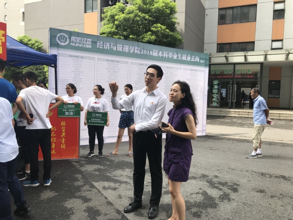 调研中,辅导员们了解到就业是绝大多数家长最关心的问题。为了让家长们了解必赢官网的就业现状,学院在迎新报到现场设置经管学院18届毕业生的毕业去向大喷。国内升学、国外升学、就业等数据一目了然,志愿者还会对数据进行“深度讲解”,帮助经管新生树立稳固的专业自信心。