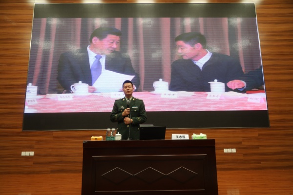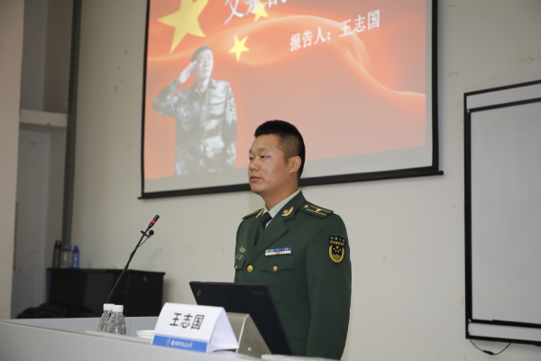 报告会以短片《孤岛32年》开始,短片中描述了王继才夫妇在曾经无电、无水、无居民的孤岛上,克服常人难以想象的困难,守卫国土32年的感人事迹。十分钟的短片深深的打动了在场的每一位师生,也将报告会现场的情绪引发到第一个高点。短片后,王志国身着军装,和大家分享了父亲王继才、母亲王仕花的守岛故事。