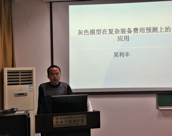 下午,李凯教授主持了第三场学术报告,首先,南航赵旭峰教授介绍了“随机维修理论”,从指数型失效分布、随机化维修策略、随机可靠性系统三个内涵展开;航天科技集团唐伟处长介绍了“系统思维与系统工程”,重点介绍了中国的系统工程及系统科学相关理论,包括控制论、信息论、一般系统论与钱学森系统科学理论;河北工业大学吴利丰副教授做了题为“灰色模型在复杂装备费用预测上的应用”的精彩报告,首先介绍了GM(0,N)模型与装备费用预测,然后简要介绍了几个典型应用:分数阶离散灰色模型及其在备件需求预测中的应用;光电装备维修器材多变量分数阶灰色预测模型研究;基于数据融合和改进MUGM(1,m,w)的导弹装备故障预测。