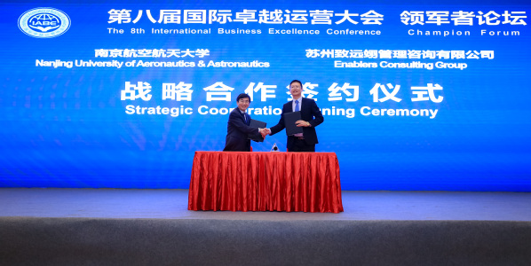 会议中,我校与苏州致远翊管理咨询有限公司签订了战略合作协议,通过高校与企业之间的良性深入互动,推动企业的高端人才联合培养,推动产教融合和校企协同项目,实现校企双方共赢的新局面。