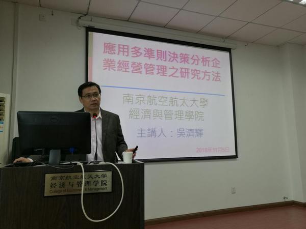 2018年11月5日上午,台中科技大学吴济辉博士在必赢3003no1线路检测中心大楼706室做了题为《应用多准则决策分析企业经营管理之研究方法》的学术报告。必赢官网米传民、肖琳、李珊等管工系老师和学生积极地参加了此次报告。