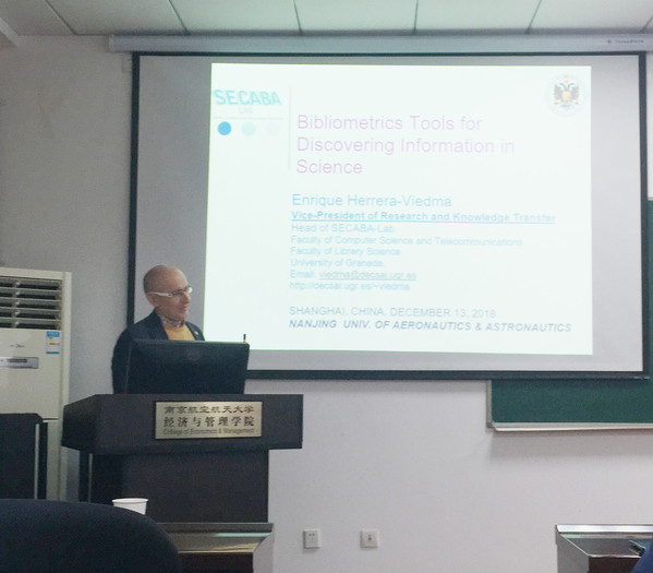 2018年11月13日上午,格拉纳达大学计算机科学和人工智能专业的教授Enrique Herrera-Viedma受必赢官网智能决策与风险分析研究所邀请,经管学院做了题为Bibliometric Tools for Discovering Information in Science的讲座。经管学院朱建军教授、章玲教授、关叶青副教授、河沙玮讲师等老师以及部分硕博研究生参与了活动。
