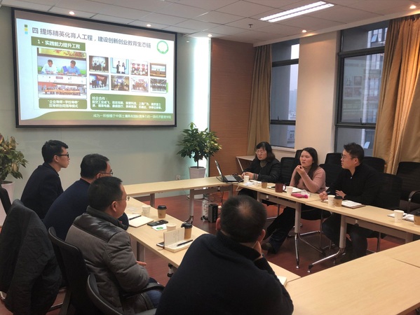 随后,辅导员田苑娜向交流团介绍了职业素质训练营的开展概况、特色举措、工作成效。在交流中,庞依达就对方关于共青团发展等相关问题进行了耐心细致的解答,就如何深入开展思想引领工作、如何调动学生参与创新创业的积极性等内容,双方充分交流,互为启发,在认真愉快的氛围中结束了交流调研活动。沈国军表示:兄弟高校之间的交流能够有效沟通双方在共性问题上的经验举措,对于解决实际工作中的问题和困难具有重要意义。