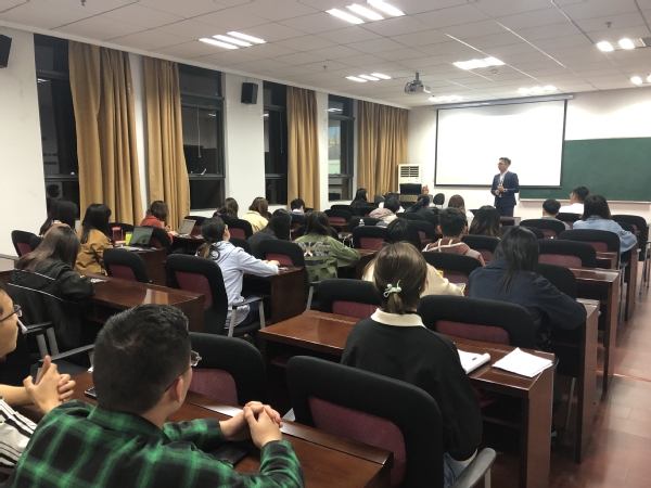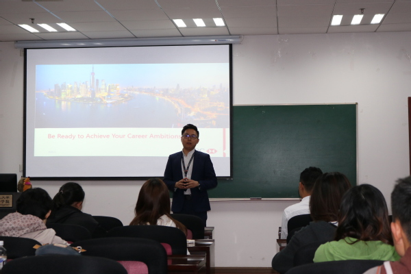 Ham首先就自己的求职经历展开分享,帮助同学们进行职业规划,并就求职过程中所面临的简历投递、面试以及企业选择等问题给同学们提供了具体建议。随后现场以“酒会”为背景进行了30秒自我介绍情景模拟,所有同学均参与了互动。