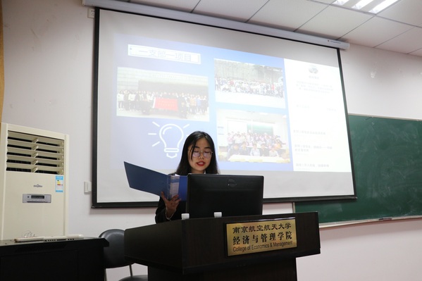 18级团干部代表依次上台,从开展目的、项目进程、收获体会等维度汇报了“一支部一项目”的开展情况,分享了自己在项目开展过程中的感受与收获,客观真实地梳理工作中的薄弱缺失项,并对项目后续的工作提出了展望。18级文强班团支书钱静烨作为代表分享了团支部“从前慢”项目中的心得体会,他们团支部将整体项目分为“见字如面”、“单车游行”、“无手机日”、“捕捉最美南航”四个部分,并通过公众号推文的形式对活动内容进行宣传,鼓励同学们放慢节奏、体验生活,感受身边的美好。除此之外,追寻烈士足迹的红色专题项目、借助支付宝公益平台的慈善募捐项目等其他优秀的支部项目也都给在座同学们留下了深刻的印象,他们精彩纷呈的展示内容让在座团干部得到了很大启发,赢得了场内的阵阵掌声。