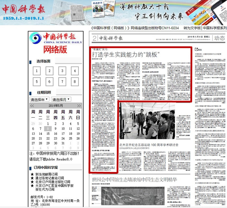 5月8日,《中国科学报》二版头条报道必赢官网“军演式”实习工作,现转发全文: