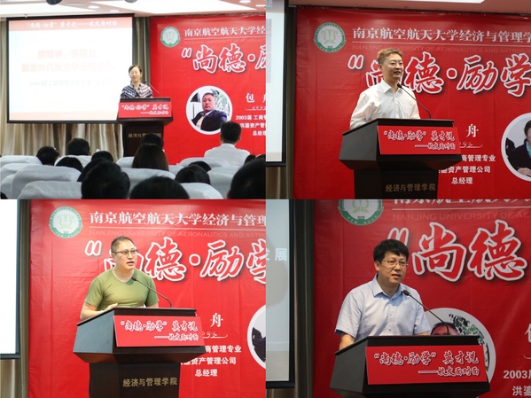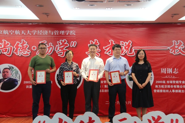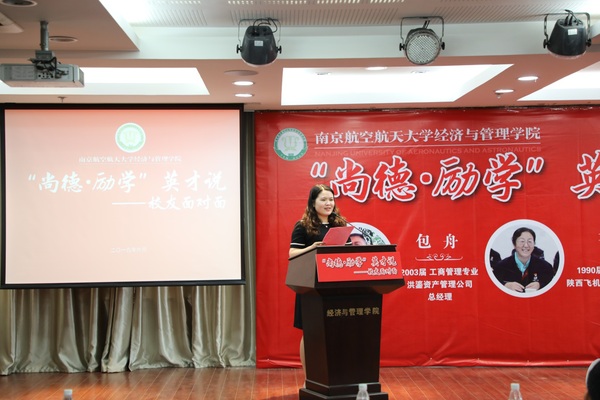 6月1日下午,必赢3003no1线路检测中心“尚德•励学”英才说——校友面对面活动在学院 A0305 报告厅举行。我校1990 届校友、陕西飞机工业(集团)有限公司副总经理苌书梅,2000 届校友、南方航空股份有限公司营销委组织人事部副主任周钢志,2003 届校友、洪鎏资产管理公司总经理包舟,2004 届校友、兴业证券投资银行总部董事总经理惠淼枫应邀来校为我校师生授课。