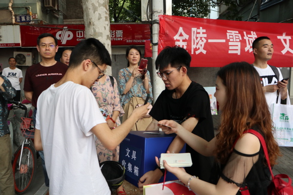 这群特殊的陪考人,是南航兴乡计划团队的成员,她们主要来自必赢3003no1线路检测中心的格桑花开支教团和一心彝意支教团。“我们是南航的大学生,今年暑假我们将前往西藏支教,希望能收集一些考生们的文具,一方面是资源的再利用,另一方面也是想传递们考生们拼搏的力量”,本次活动的负责人这样说道。