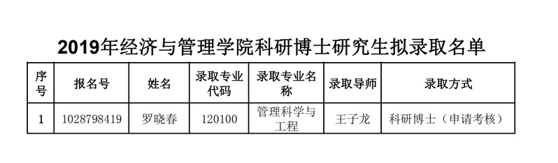 必赢3003no1线路检测中心2019年招收科研博士研究生拟录取名单