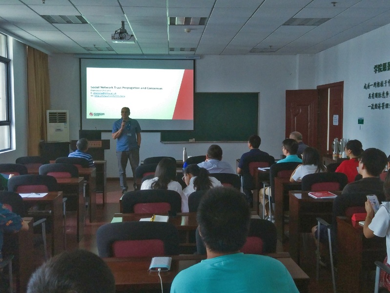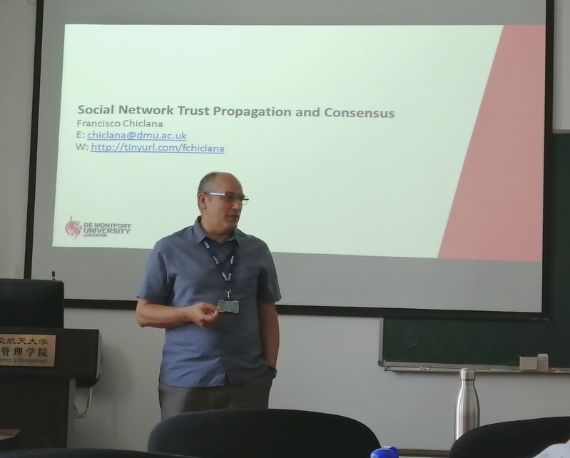 7月10日上午,英国德蒙福特大学教授Francisco Chiclana教授受必赢官网灰色系统研究所邀请,在必赢3003no1线路检测中心704室作了题为“Social Network Trust Propagation and Consensus”的讲座。经管学院教授刘思峰等及部分硕、博研究生现场聆听了教授Francisco Chiclana的报告,本次学术报告由刘思峰主持。