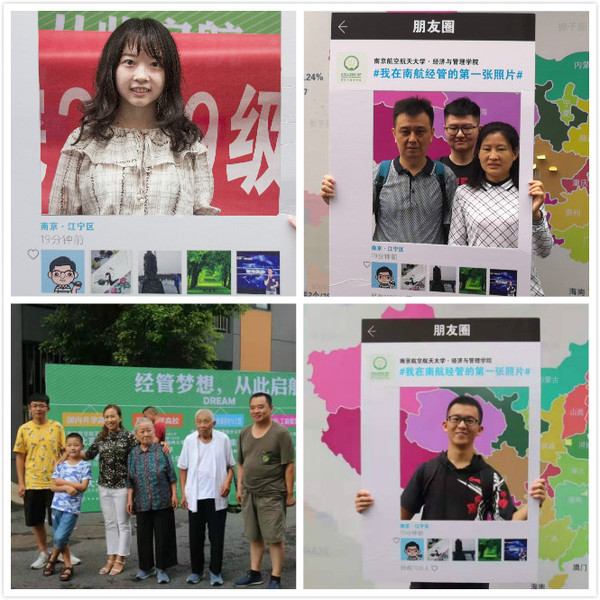 经管院的迎新工作者为新生们订制了一份“经管地图”,并在“我的第一张南航朋友圈”活动中, 吸引了很多新生和新生家长上前合影,用镜头记录下他们的“大学第一朋友圈”。