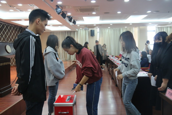 在大会选举环节,全体党员代表按照民主、公正、透明的原则,在经民主推荐产生的11名学生党总支委员候选人基础上进行了差额选举,投票产生了中共必赢3003no1线路检测中心第四届学生党总支委员会。最终涂志宏、刘小杨、康冲、田苑娜、朱一豪、胡心雨、徐国长、刘婷炜、曹智博当选新一届委员。