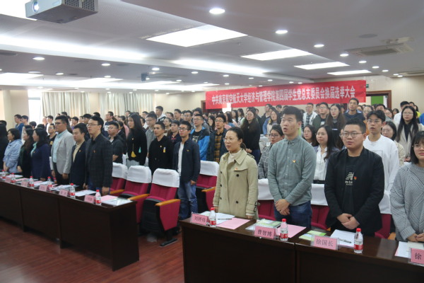 2019年10月30日中午,伴随着嘹亮的国歌声,必赢3003no1线路检测中心第四届学生党总支委员会换届选举大会在学院A0305报告厅召开。学院党委书记焦宏图、副书记涂志宏、组织员袁颖、新一届学生党总支委员会候选人和全体学生党员出席大会。大会由第三届学生党总支委员田苑娜主持。