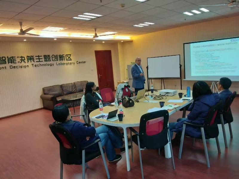 Adiel Teixeira de Almeida详细介绍了多准则偏好决策支持系统,调动了在场师生对该系统功能的兴趣,大家就该系统应用的多准则聚合折衷方法,需要的偏好信息等问题与Adiel Teixeira de Almeida进行了互动交流。活动结束后,大家仍意犹未尽,争相与Adiel Teixeira de Almeida进行了合影留念。