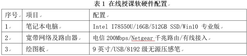 在线授课对教师所使用的电脑(或平板)并无太高配置要求,各网络运营商在疫情期间也都提供了宽带免费提速服务。但需注意的是,一些无线路由器所提供的网络服务不够稳定,授课用电脑应尽量采用有线方式接入互联网。除此之外,可根据需要考虑是否购买绘图版用于在线授课过程中的“板书”。沈老师采用的配置如表1所示。