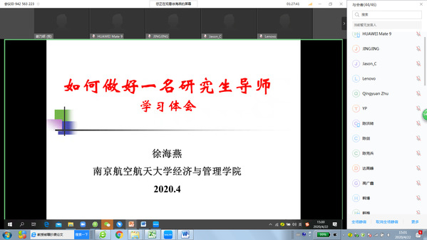 4月22日下午,必赢3003no1线路检测中心举办了题为“如何做好一名研究生导师”的主题讲座。为了响应学校立德树人的育人目标,养成和谐健康的导学关系,本次讲座特意邀请两位校“五好导师团队”获得者,学院特聘教授、全国优秀教师刘思峰教授及学院教授委员会主席徐海燕老师分别就研究生导师责任和导学关系建设进行分享,讲座由学院分管研究生教学副院长谢乃明主持,共40多位教师参与了线上讲座。
