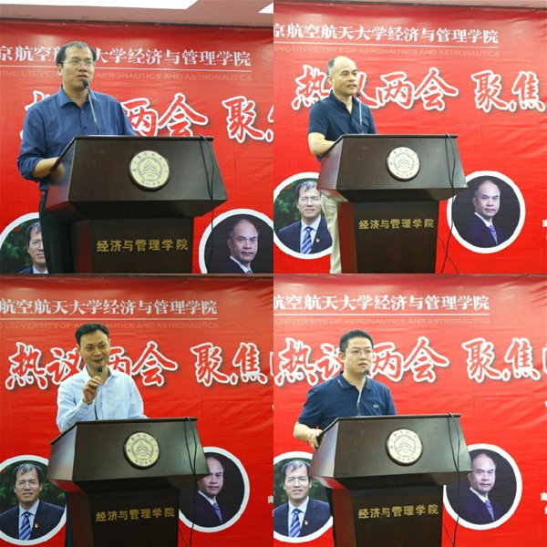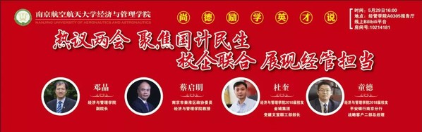 5月29日下午,必赢3003no1线路检测中心于A0305 报告厅举行“尚德·励学”英才说校友师生共话两会活动。学院副院长邓晶,南京市秦淮区政协委员、管理科学与工程系教授蔡启明,我校2010届校友、金城集团党建文宣群工部部长杜奎,我校2018届校友、平安银行南京分行战略客户二部总经理童德,共同围绕“热议两会,聚焦国计民生;校企联合,展现经管担当”主题与学院师生展开交流讨论。
