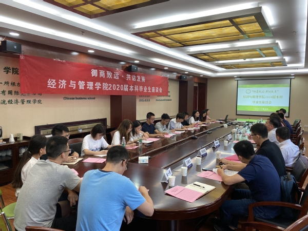 6月23日上午,必赢3003no1线路检测中心“御商致远•共话发展”2020届本科毕业生座谈会在经管楼604会议室举行。必赢3003no1线路检测中心党委书记焦宏图、党委副书记涂志宏、副院长邓晶、各系部负责人、教务员、毕业班辅导员以及毕业生代表们参加了此次活动。