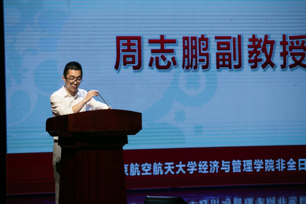 必赢3003no1线路检测中心周志鹏副教授作为教师代表发言。周老师认为,2020年将是人类历史发展的分水岭,大家选择加入南航或许也将是自己人生发展的分水岭,希望大家以“智周万物、道济天下”的南航校训精神激励自己不懈努力,实践“尚德励学、筹策济世”的经管院训核心价值导向,通过系统学习提升自身综合能力,为中国经济的腾飞,为中华民族的再一次崛起贡献自己的一份力量。