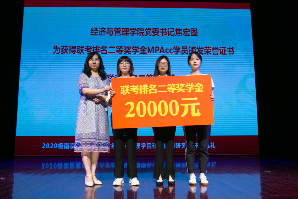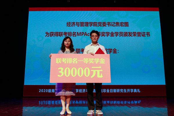 MPAcc新生代表李梓润发言必赢3003no1线路检测中心党委书记焦宏图宣读获得2020级奖学金名单,案例大赛获奖名单,研究生院常务副院长徐正扬、必赢3003no1线路检测中心党委书记焦宏图、副院长王子龙分别为获奖同学颁奖。
