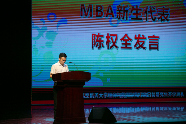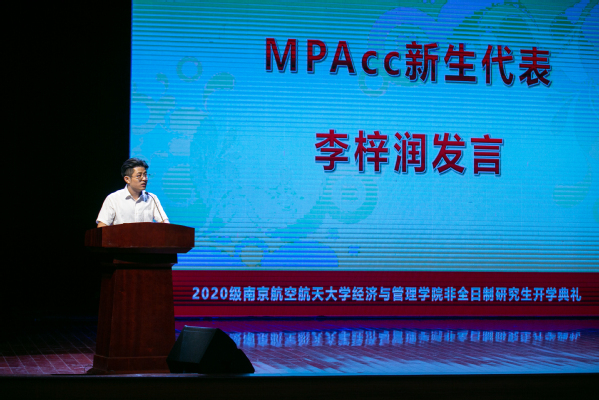 2020级MBA学生陈权全、MEM学生王琳琳、MPAcc学生李梓润代表全体新生发言。陈权全表示,南航MBA“培养学有专攻、富有远见、高尚敬业的中高层管理人才和创新创业精英”的培养目标吸引了他,1号楼闪闪发光的校名始终激励着他,希望身处内外部环境巨变中的同学们在研究生学习期间一起努力,能够抓住一切可以提升自身能力的机会,从知识、眼界、待人接物各方面提升自己的综合素养,努力践行“严谨务实作风、全面过硬素质、笃定高远志向”的MBA使命,最终都能成为自己所在行业的领航者。本科毕业于必赢3003no1线路检测中心机电学院的王琳琳对20年后能够以学生身份重返南航校园倍感荣幸,非常珍惜这段难得的学生时光,希望在3年后能够收获一个不一样的自己,成为母校的骄傲。李梓润对未来的研究生生涯充满希翼,希望大家携手并进,扬帆起航,为自己的人生谱写新的华章。