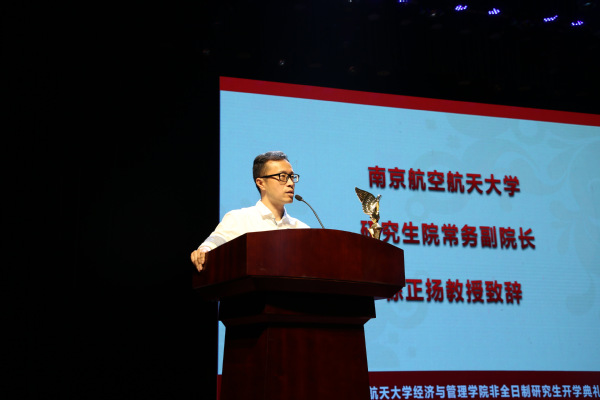沙九队长陆杨发言研究生院常务副院长徐正扬致辞,徐院长认为经管院在职研究生教育是南航研究生教育的重要组成部分,在新冠疫情的巨大影响下,大家能够通过层层选拔成为南航一员,实属不易。南航经管院建院36年来在研究生培养上取得的成就有目共睹,南航MBA“深耕江苏、服务三航、辐射长三角”项目定位和项目特色非常明确。希望全体研究生脚踏实地、好学会学、治学严谨、求真守真,不断探索感悟,用思考和行动成就更好的自己。