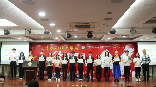 紧接着,6名优秀实践个人带来了精彩的朗诵,并将象征自己的星星献给祖国的辽阔疆域,9名团队代表依次亮相,寓意经管学子于全国各地用青春向祖国报告。随后,通过现场投票和统计,活动评选出“最佳人气奖”和“最佳风采奖”,赵铮为获奖者颁发证书。